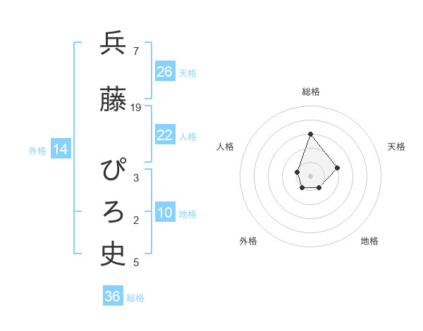 兵藤 ぴろ史さんを姓名の画数から五運を鑑定