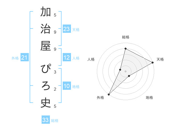 加治屋 ぴろ史さんを姓名の画数から五運を鑑定