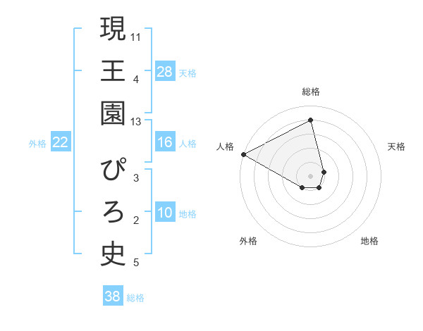 現王園 ぴろ史さんを姓名の画数から五運を鑑定