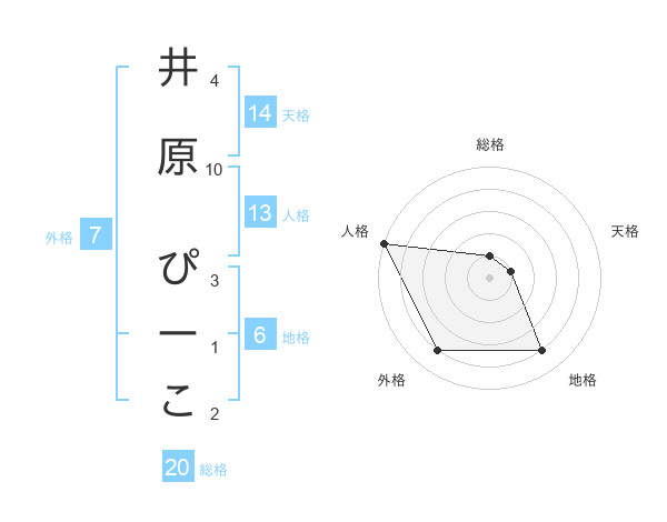 井原 ぴーこさんの総格は20画の1点!