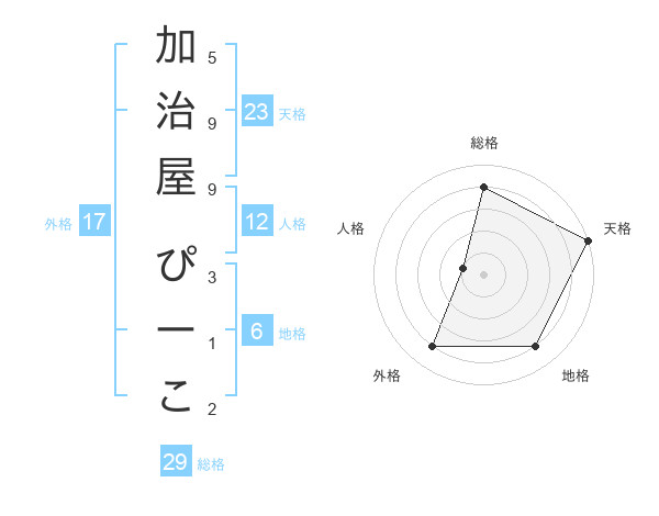 加治屋 ぴーこさんを姓名の画数から五運を鑑定