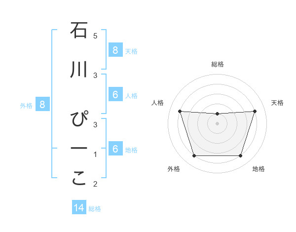 石川 ぴーこさんを姓名の画数から五運を鑑定