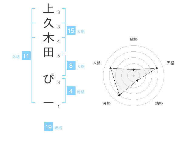 上久木田 ぴーさんを姓名の画数から五運を鑑定