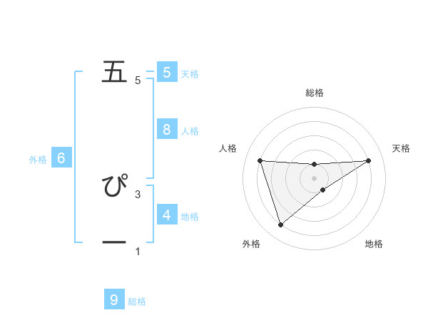 五 ぴーさんの総格は9画の1点!