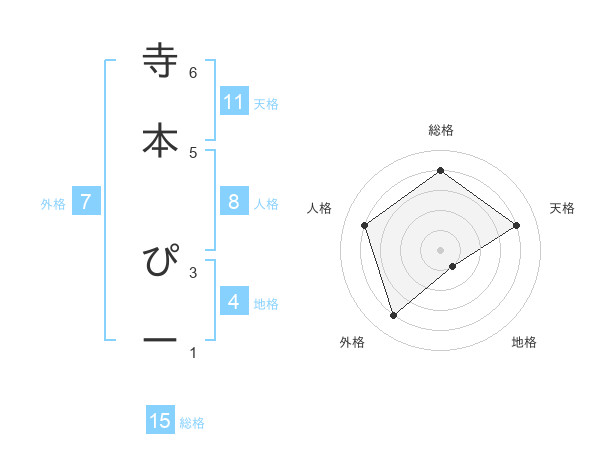 寺本 ぴーさんの天格は11画の4点!