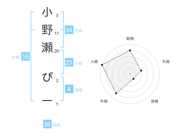 小野瀬 ぴーさんの総格は38画の4点!