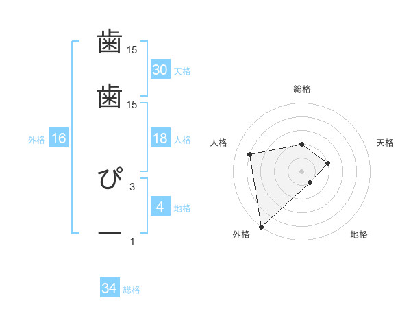 歯歯 ぴーさんを姓名の画数から五運を鑑定