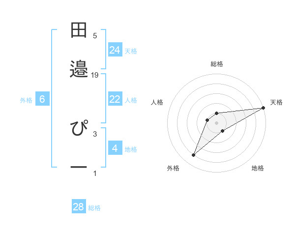 田邉 ぴーさんを姓名の画数から五運を鑑定