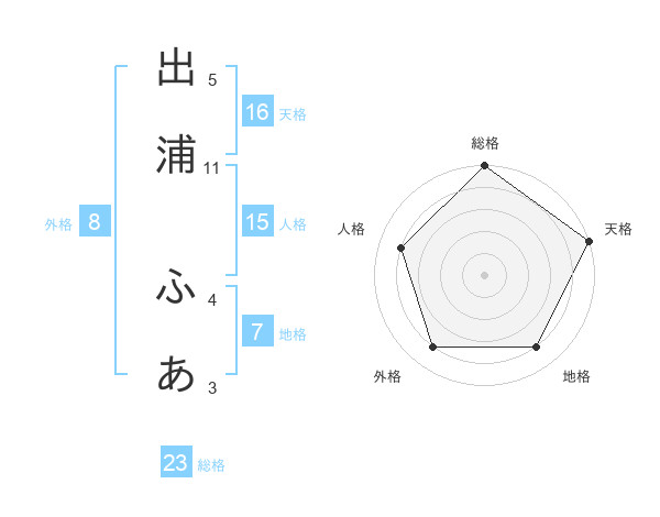 出浦 ふあさんを姓名の画数から五運を鑑定