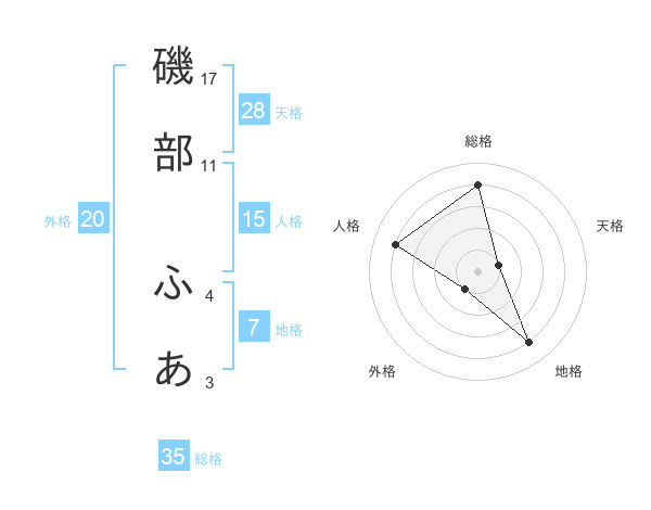 磯部 ふあさんを姓名の画数から五運を鑑定