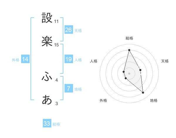 設楽 ふあさんの外格は14画の1点!