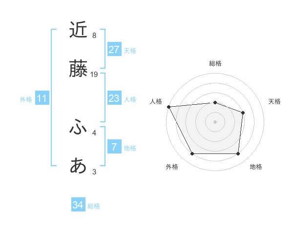 近藤 ふあさんを姓名の画数から五運を鑑定