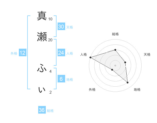 真瀬 ふぃさんの総格は36画の3点!