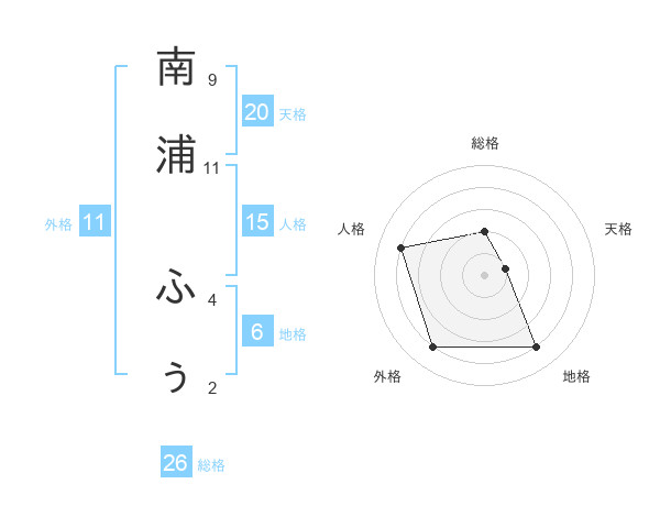 南浦 ふぅさんを姓名の画数から五運を鑑定