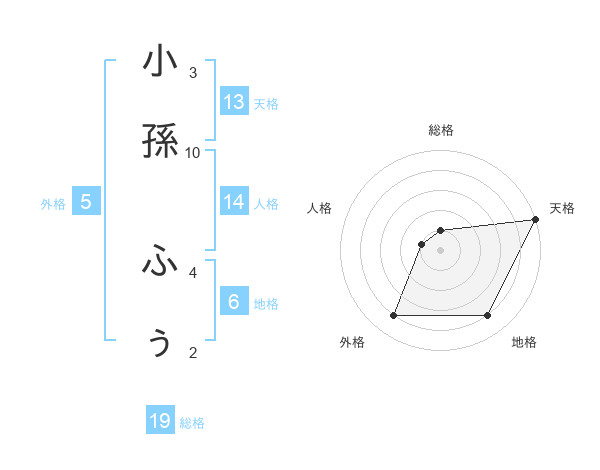 小孫 ふぅさんの天格は13画の5点!