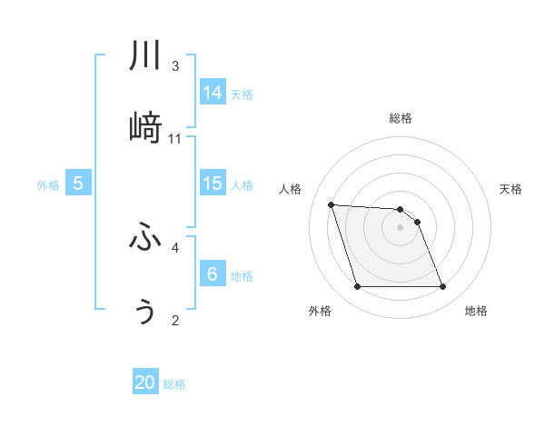 川﨑 ふぅさんの総格は20画の1点!