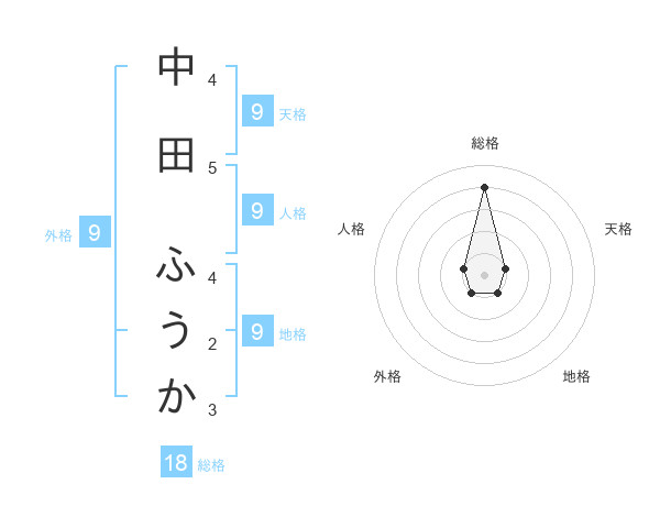 中田 ふうかさんの総格は18画の4点