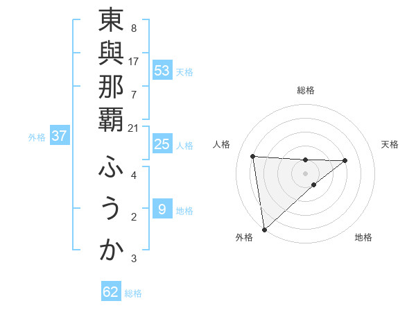 東與那覇 ふうかさんの外格は37画の5点
