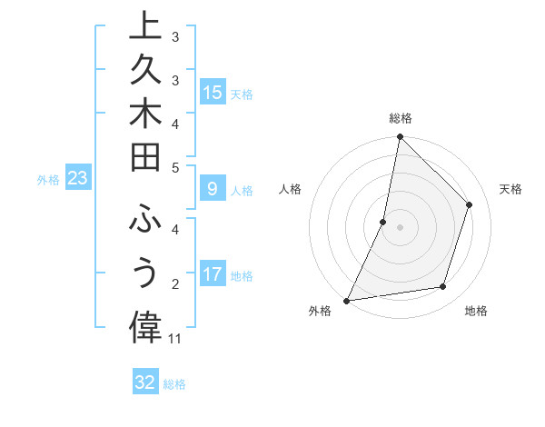 上久木田 ふう偉さんの外格は23画の5点!