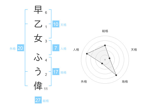 早乙女 ふう偉さんを姓名の画数から五運を鑑定