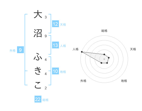大沼 ふきこさんを姓名の画数から五運を鑑定