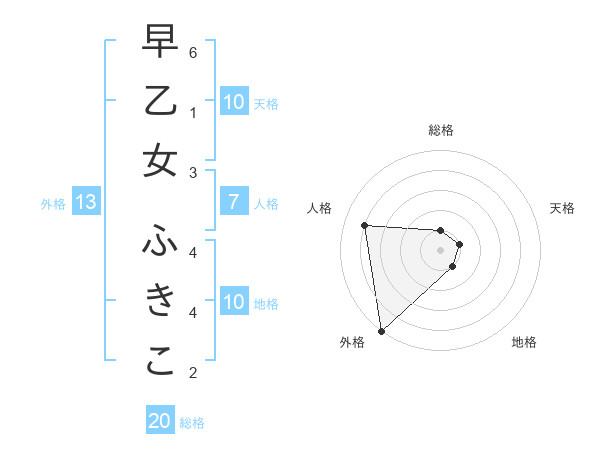 早乙女 ふきこさんを姓名の画数から五運を鑑定