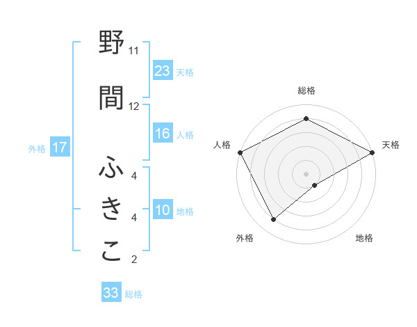 野間 ふきこさんの外格は17画の4点