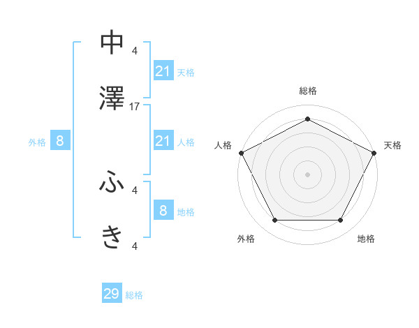 中澤 ふきさんの総格は29画の4点!