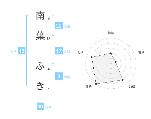 南葉 ふきさんの外格は13画の5点!