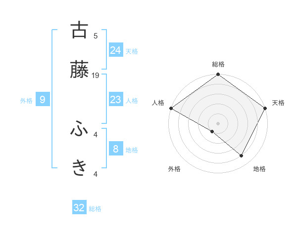 古藤 ふきさんの総格は32画の5点!