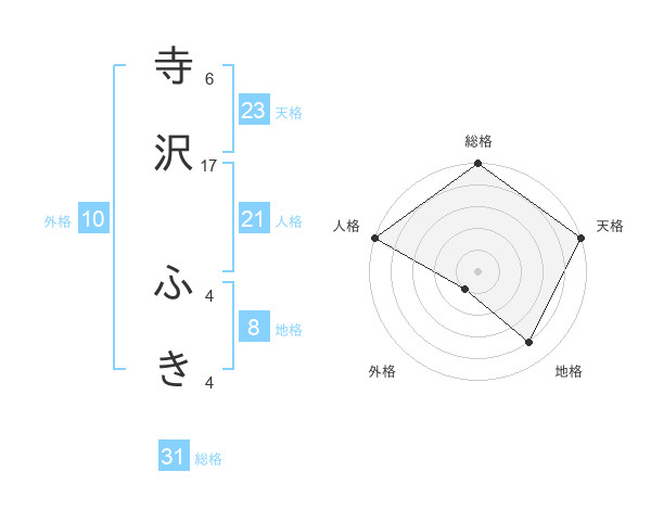 寺沢 ふきさんの総格は31画の5点!