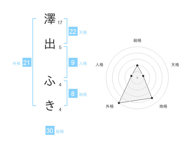 澤出 ふきさんの外格は21画の5点!