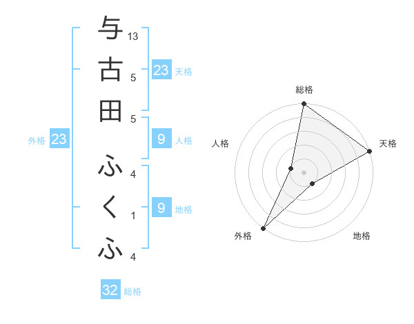 与古田 ふくふさんの外格は23画の5点!