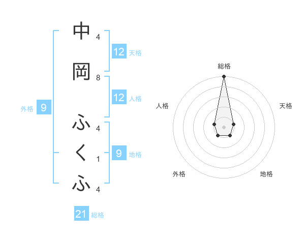 中岡 ふくふさんの総格は21画の5点!