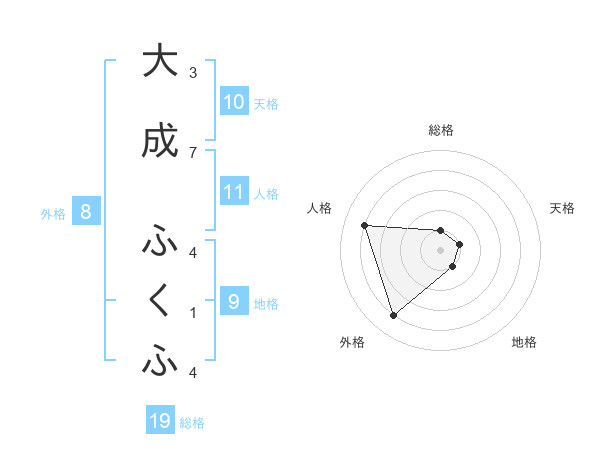 大成 ふくふさんの総格は19画の1点!