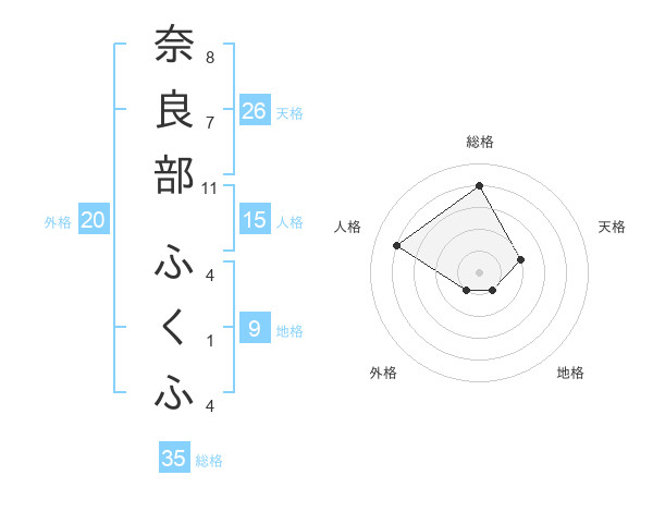 奈良部 ふくふさんを姓名の画数から五運を鑑定