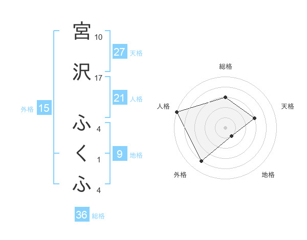 宮沢 ふくふさんを姓名の画数から五運を鑑定