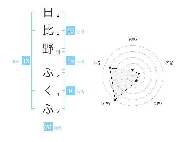 日比野 ふくふさんを姓名の画数から五運を鑑定