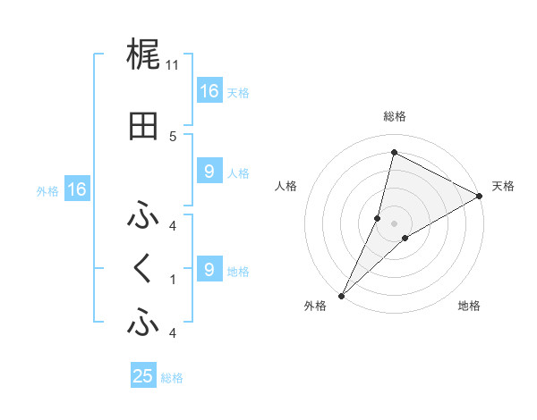 梶田 ふくふさんの外格は16画の5点!