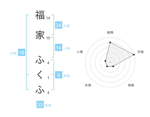 福家 ふくふさんの総格は33画の4点!