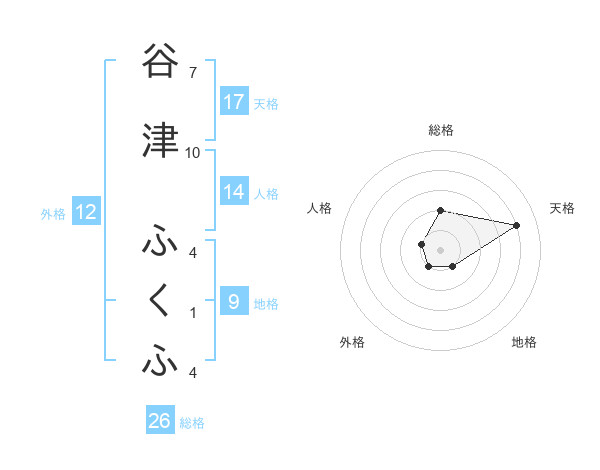 谷津 ふくふさんを姓名の画数から五運を鑑定