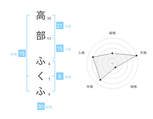 高部 ふくふさんの外格は15画の4点!