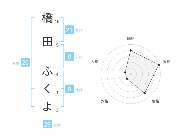 橋田 ふくよさんを姓名の画数から五運を鑑定