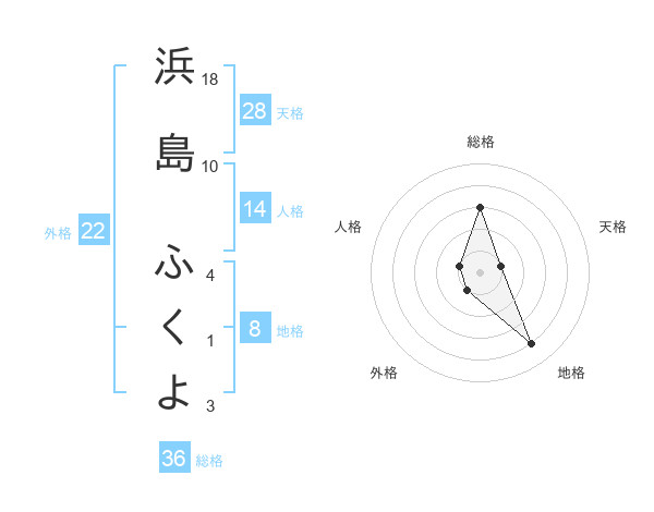 浜島 ふくよさんを姓名の画数から五運を鑑定