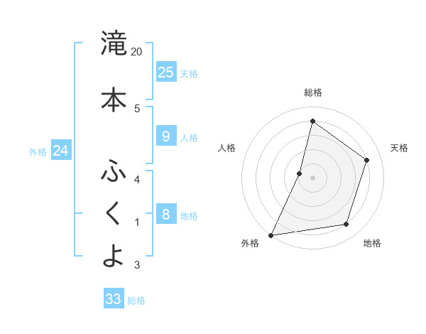 滝本 ふくよさんを姓名の画数から五運を鑑定