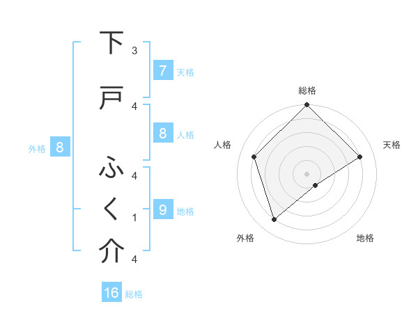 下戸 ふく介さんを姓名の画数から五運を鑑定