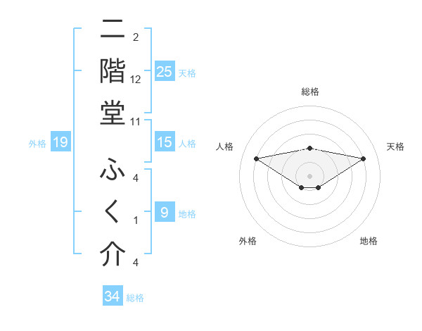 二階堂 ふく介さんを姓名の画数から五運を鑑定