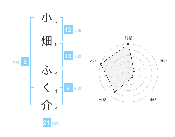 小畑 ふく介さんを姓名の画数から五運を鑑定