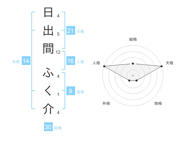 日出間 ふく介さんを姓名の画数から五運を鑑定