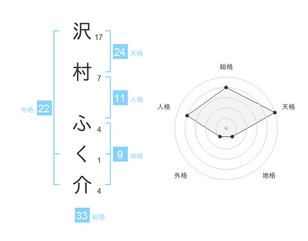 沢村 ふく介さんを姓名の画数から五運を鑑定